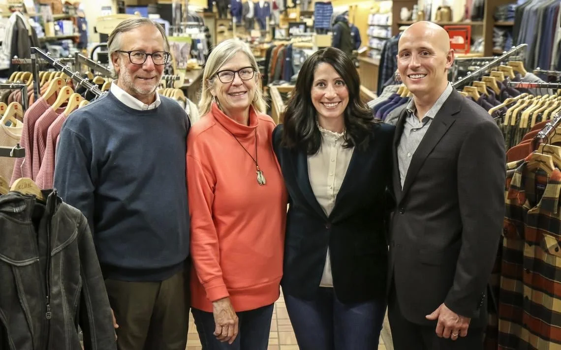 In April 2018, Steve and Sally’s daughter Molly and her husband Jeff Miller became fourth-generation owners of Patterson’s Clothing. As with generations before them, Steve and Sally eased into retirement knowing the family business remained in capable hands.